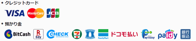 DUGA会員の決済方法には、クレジットカード(VISA・MASTER・JCB)と預かり金(BitCash・Edy・C-CHECK・コンビニ決済・ドコモ払い・ペイジー・Paidy翌月払い・銀行振込)からお選びいただけます。